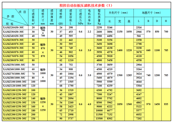 程控自動(dòng)拉板壓濾機(jī)技術(shù)參數(shù)(1)